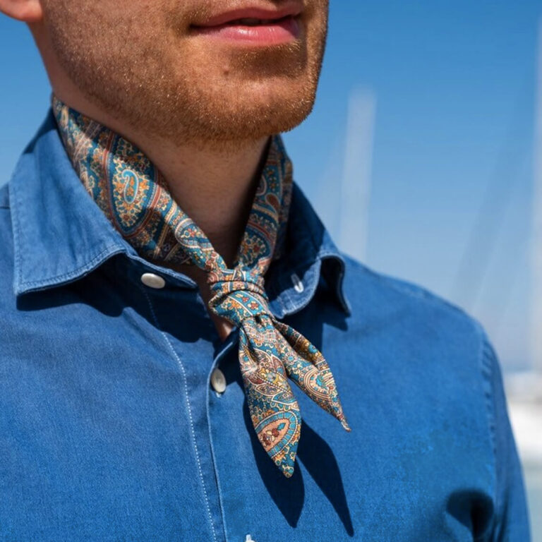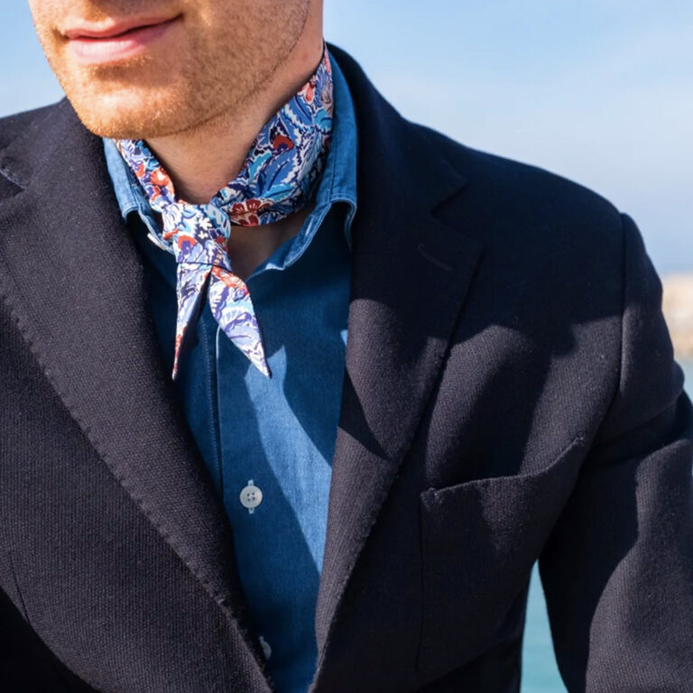 Ogni foularino è realizzato rigorosamente a mano in piccolissime tirature e su richiesta è possibile personalizzare il papillon, ricamando le proprie iniziali.